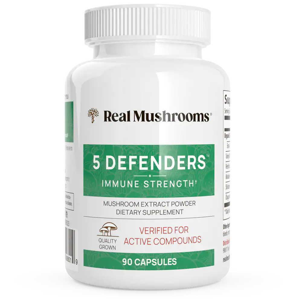 Every serving of the 5 Defenders Organic Mushroom Blend Capsules delivers a robust >20% Beta-glucan content. Beta-glucans are pivotal compounds found in mushrooms, contributing to their potential health-supporting properties.
