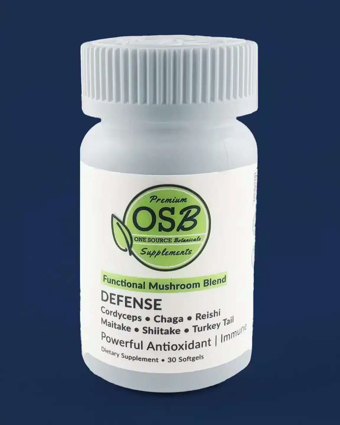 Elevate your health with One Source Botanicals Defense Blend Mushroom Extract Capsules. Packed with powerful antioxidants from Chaga, Reishi, Maitake, Shiitake, Turkey Tail, and Cordyceps mushrooms, plus Curcumin for optimal immune support and wellbeing. Experience natural defense and wellness in every capsule.