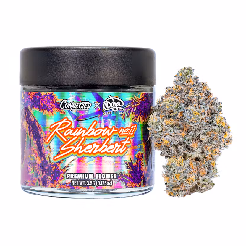 Rainbow Sherbert #11, also known as “RS-11” is a balanced hybrid bred by crossing Pink Guava with OZK. This prime cut of Deep East x Wizard Trees x Doja Paks’ exclusive genetics, cultivated by Connected, has quickly gained popularity for its relaxing and uniquely euphoric effects. RS11s breathtakingly beautiful blue-green buds pack a potent punch and produce a pungent perfume that sticks in your nostrils. Perfectly cured nugs captivate connoisseurs with deep purple hues, fiery tentacle-like pistils, and a dank dusting of frosty trichomes. Smooth smoke leaves a lingering taste of musty mango and sour cherry on the tongue while inducing feelings of spacey euphoria immediately upon exhale. The complex and intriguing aroma of the RS11 strain makes it a notably tasty treat, perfect for impressing friends or leveling up any smoke sesh.