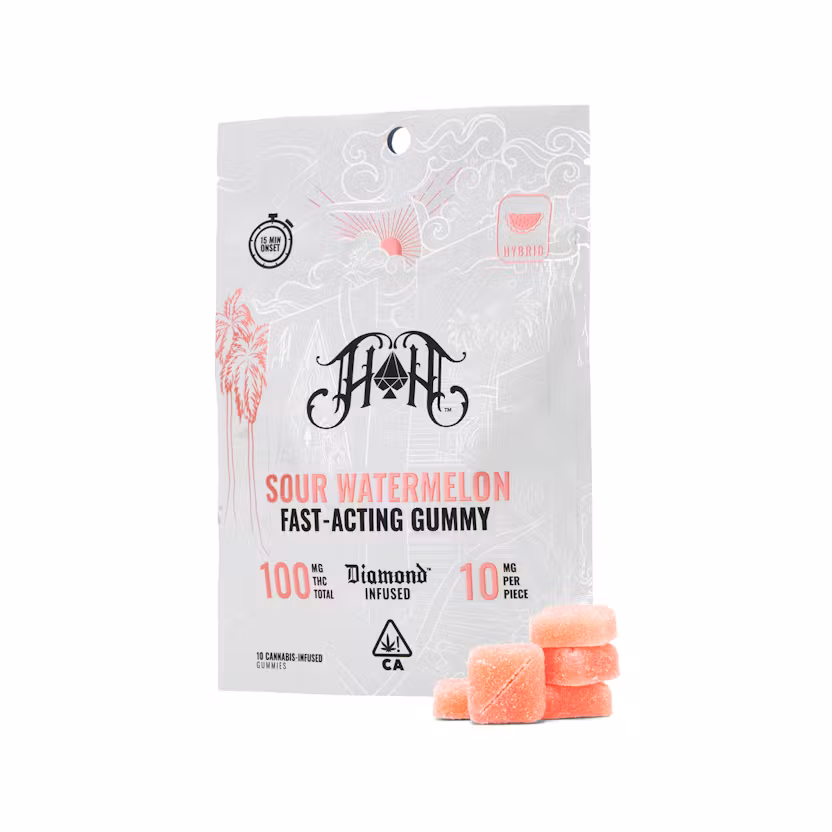 “Infused with 99%+ pure THCA diamonds, our fast-acting formulation offers a clean high that hits quickly. Each gummy is made with real fruit concentrate and is bursting with a bold, sour flavor to kick your taste buds into gear.